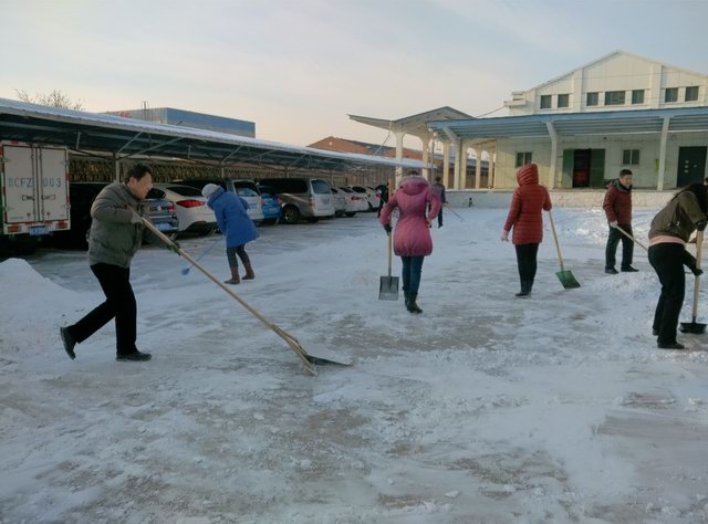 近日秦皇岛连续两天降雪,为确保我厂生产安全和职工的安全出行,雪一停,全厂职工在厂部领导的带领下,冒着严寒对厂区及内外道路上的积雪进行了清理。热火朝天的扫雪场面给这个寒冷的冬季带来一丝暖意。每位员工投入十二分的热情,各尽所能,克服天气严寒、扫雪工具有限等困难,用各种简易的工具为厂区开辟了安全畅通的道路。这不仅为生产安全和全体职工的行走安全提供了有力的保证,而且显示了我厂职工工作的积极性和热情。