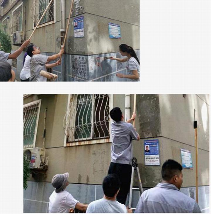 有的拿棍子把小广告浸湿,有的拿小铲子一点点铲,有的拿铁刷子一点点刷,有的拿涂料一遍遍涂抹;