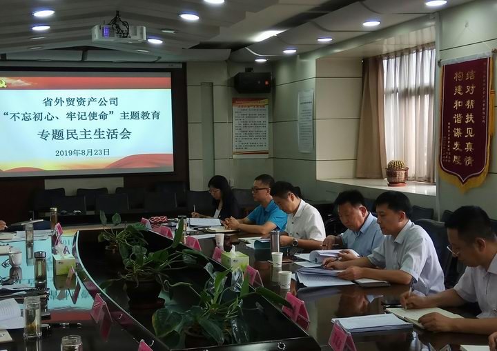 按照省国资委党委及公司党委“不忘初心、牢记使命”主题教育安排部署,8月23日,省外贸资产公司召开“不忘初心、牢记使命”主题教育专题民主生活会。省国资委主题教育第二巡回指导组组长马凤申一行出席会议,并全程督导指导。公司党委书记、董事长、总裁张元贞主持会议。公司领导班子成员参加会议,相关部室负责人、职工代表列席会议。