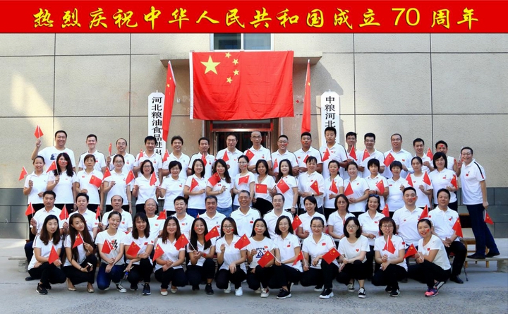 为庆祝伟大祖国70华诞,中粮河北国际贸易有限公司组织全体员工举行“为祖国庆生,与国旗合影”活动。