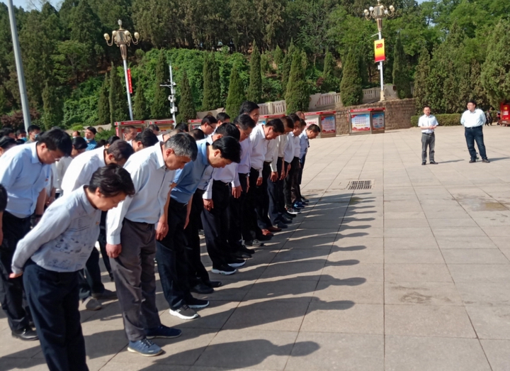 缅怀革命先烈,追忆初心使命。五月的西柏坡,松柏苍翠,生机勃发。上午9时许,公司系统党员干部来到西柏坡纪念馆广场,在五大书记塑像前整齐肃立,向伟人敬献花篮。公司党委书记、董事长、总裁张元贞上前整理敬联,带领全体同志向五大书记塑像鞠躬敬礼。