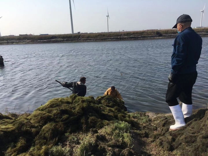 其次,控制水草。水草疯长是海参养殖的大敌,尤其在高温期,死亡的水草会导致圈底大面积缺氧、硫化氢中毒、氨氮超标、漂参死亡等现象。因此,控草最好从低温开始,越早越好。为此,河北蓝翼从开春后就开始了捞草大战,公司班子成员全都投入到劳动之中,为职工做出表率。