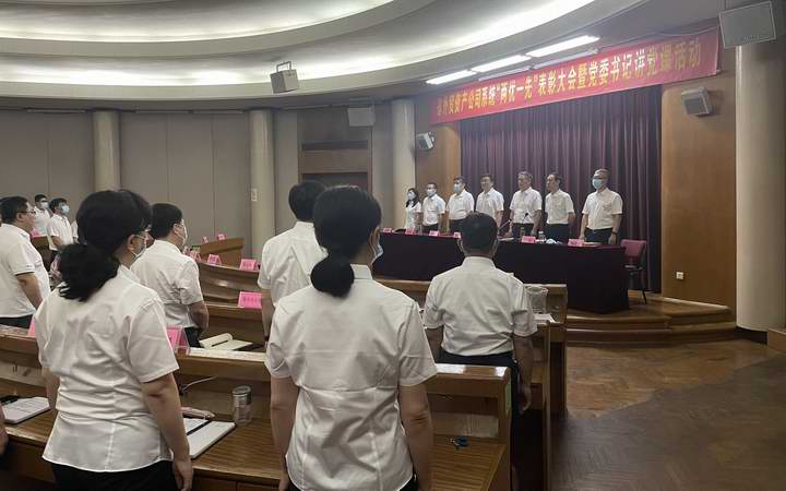 为庆祝中国共产党成立101周年,进一步激励公司系统各级党组织和广大党员继承和发扬党的光荣传统,增强党性意识,凝聚发展力量,2022年6月29日,省外贸资产公司举行“两优一先”表彰大会暨党委书记讲党课活动。公司领导,各企业党组织书记、党务分管领导,总部各部室主要负责人、党支部书记,受表彰人员共计47人参加会议。会议由党委副书记、副董事长、总经理李玉民同志主持。