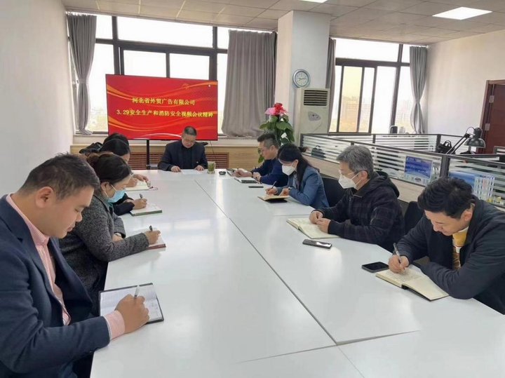 为深入贯彻落实省国资委安全生产和消防安全视频会议精神,牢固树立安全生产意识,持续压实安全生产责任,扎实做好安全生产和消防安全工作,按照省外贸资产公司《关于认真贯彻落实省国资委3.29安全生产和消防安全视频会议精神的通知》要求,3月30日上午,河北广告立即召开专题会议,传达了视频会议精神,安排部署了安全生产和消防安全措施。会议由党支部书记、执行董事、总经理魏斌主持,公司全体员工参加会议。