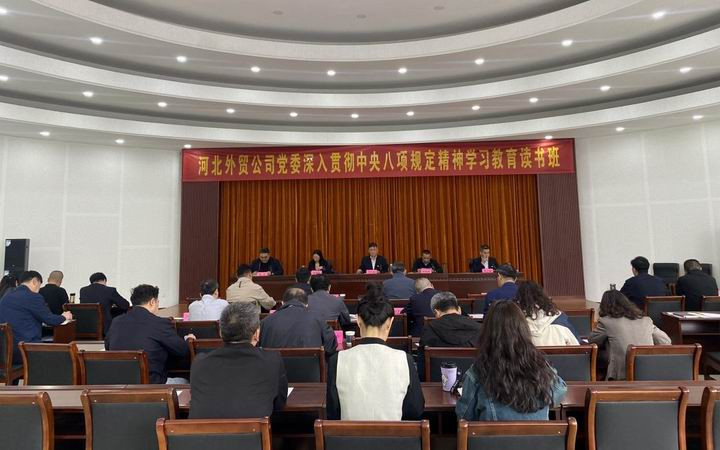 4月27日至28日,河北外贸公司党委举办深入贯彻中央八项规定精神学习教育读书班。公司党委副书记、副董事长、总经理李玉民作开班动员辅导讲话并对下一步开展学习教育提出要求,党委常委、纪委书记刘利成主持会议。公司领导班子全体成员、出资企业党组织书记、总部全体党员参加学习。
